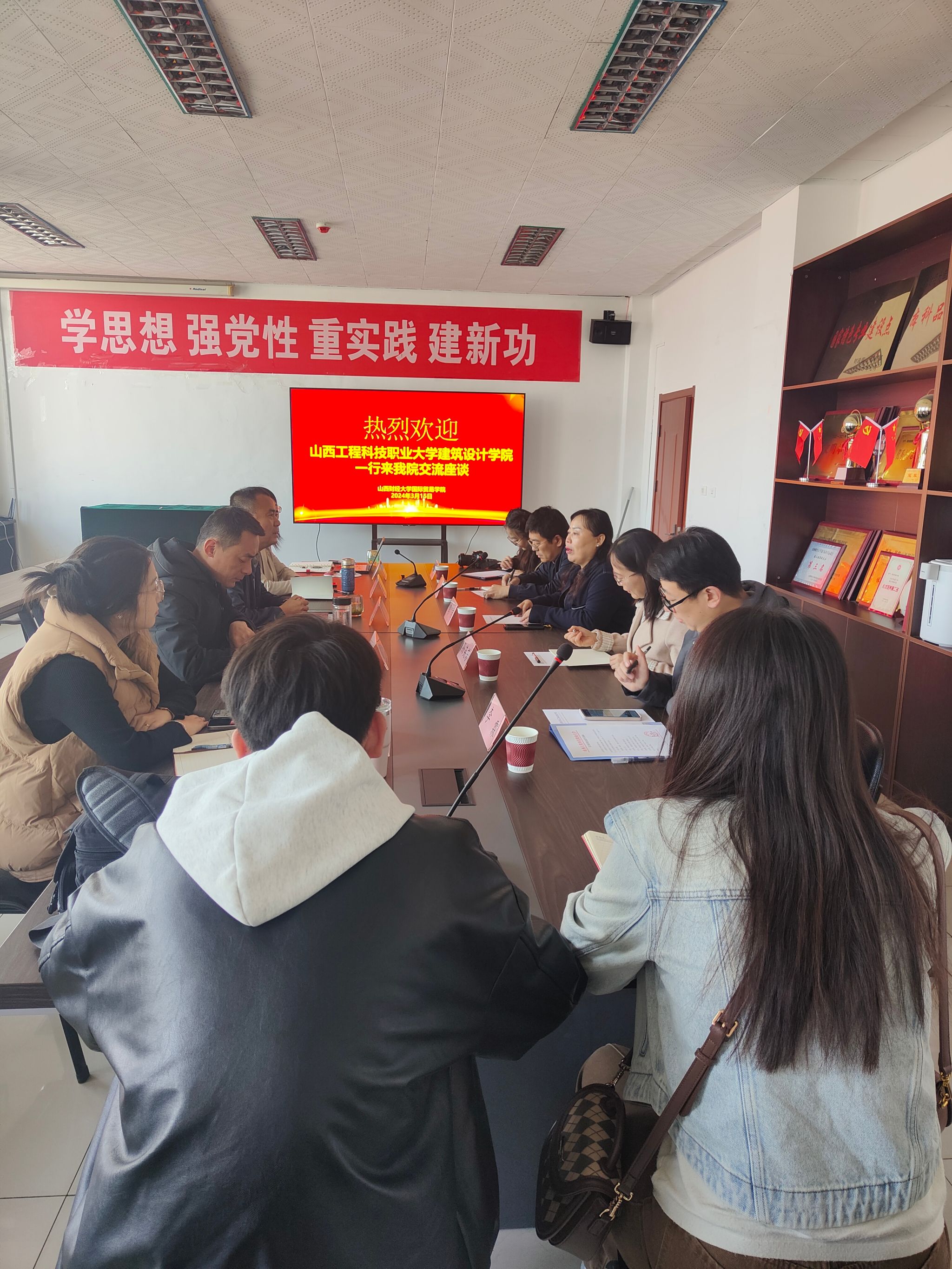 为深化院际间交流合作,2024年3月15日上午,山西工程科技职业大学建筑设计麻将连连看 副书记马丽、副院长孙英芳、学工办公室主任赵飞、团委书记李霖、综合办公室干事余晓雯及学生会干部一行7人来麻将连连看 开展交流座谈。座谈会由麻将连连看 党委书记陈晓虎主持。副书记殷丽娟、副院长刘军及科级干部参加了座谈交流。