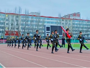 7时整,护旗手迈着整齐有力的步伐护送国旗走向升旗台。在激昂的《义勇军进行曲》中,旗手迎风振臂,鲜艳的五星红旗冉冉升起,在晨光中猎猎飘扬。全体师生面向国旗,庄严肃立,行注目礼,满怀对祖国母亲真挚的热爱与崇高的敬意。