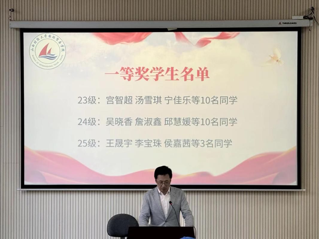获得一等奖的学生宫智超同学作为学生代表发言,她说社会实践是连接理论知识与实践应用的重要桥梁,是培养问题意识、提升思辨能力的优质平台,更是青年学子涵养社会责任感、践行青年担当的必修课程,此次实践经历让自己受益匪浅。国际经济与贸易教研室主任李丽副教授作为教师代表,教导学生要走出校门、走出家门,将课堂所学专业知识应用于社会实践,培养对专业知识的认识。